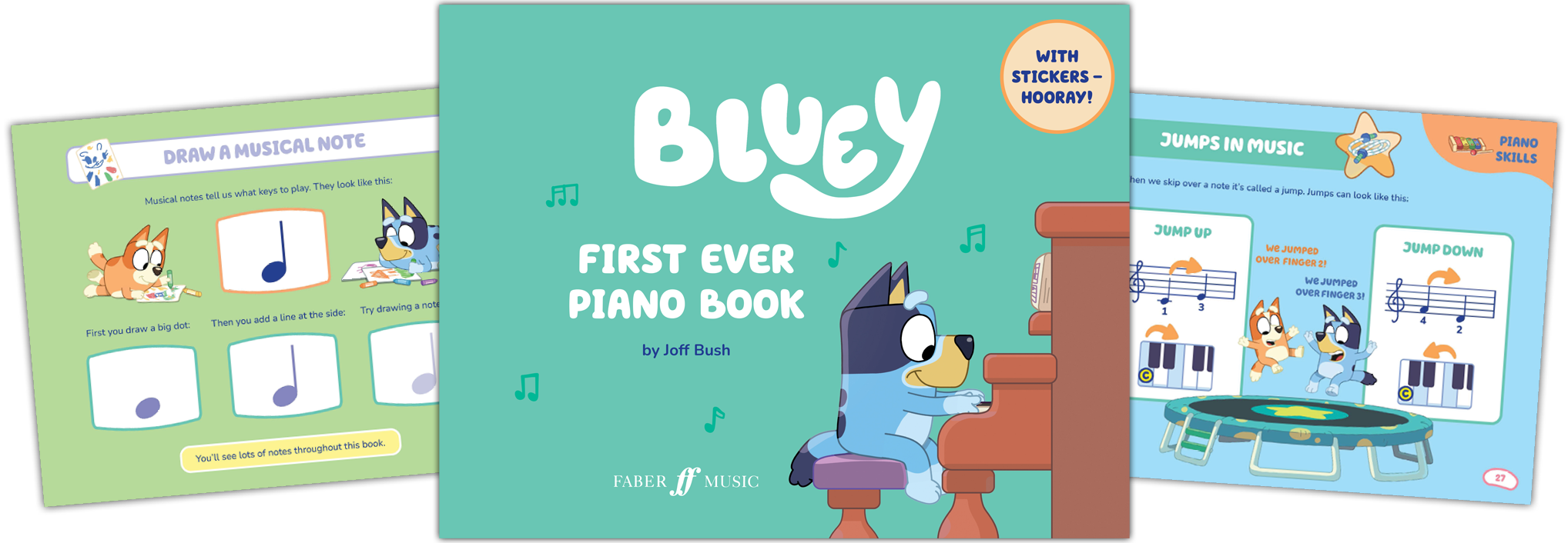 The series follows Bluey, a loveable, inexhaustible, Blue Heeler dog, who lives with her Mum (Chilli), Dad (Bandit) and her little sister, Bingo. Bluey uses her limitless energy to play games that unfold in unpredictable and hilarious ways, bringing her family and the whole neighbourhood into her world of fun. The Emmy® and BAFTA Award-winning sensation is adored by families around the world, and Bluey’s music has captured their ears (and hearts), accumulating over 1 billion lifetime audio streams across all platforms. Now, with Bluey: First Ever Piano Book, the adventures continue – this time through learning the piano.